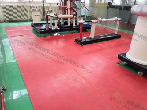 下圖是紅色絕緣膠墊的鋪設后的實際場景圖片